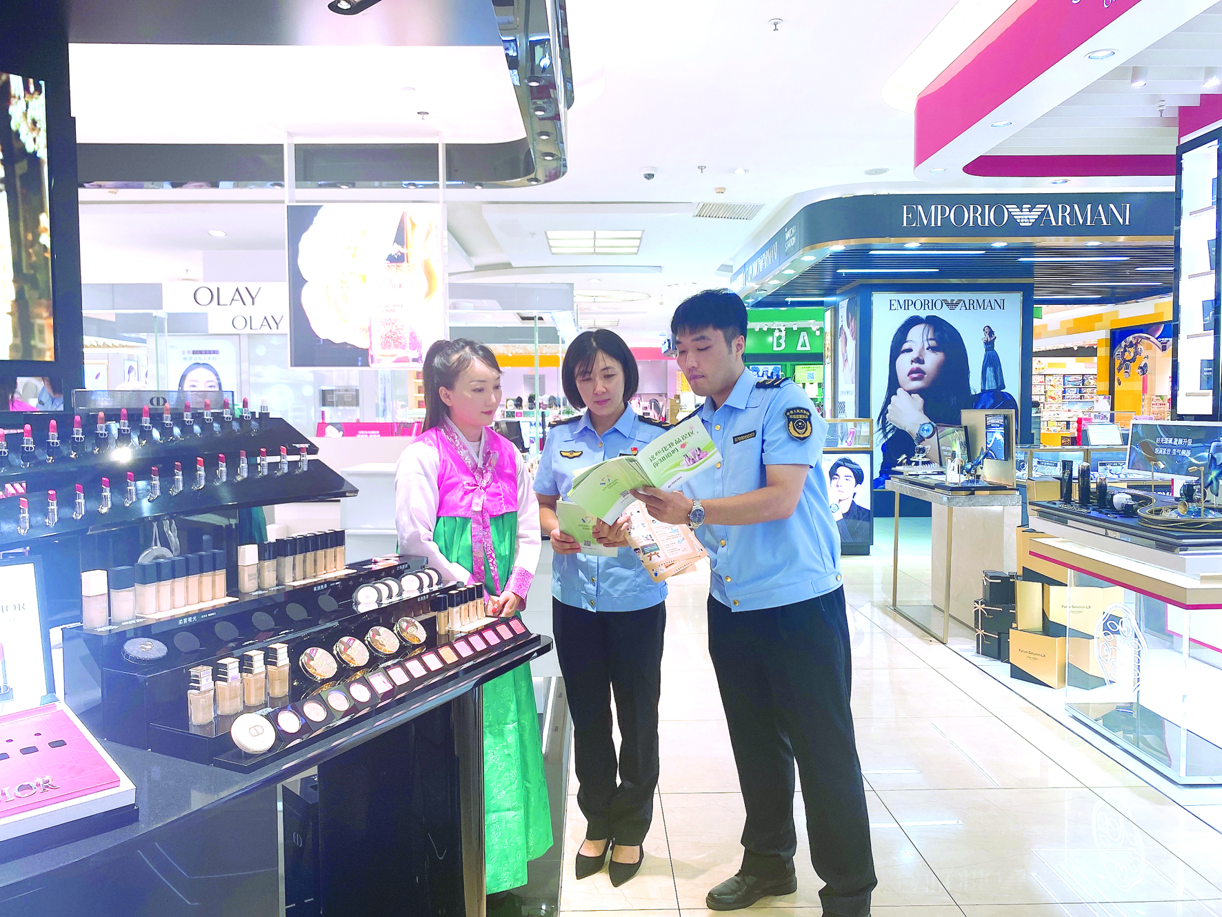 2024 ‘전국 약품안전 선전주간’을 맞으며 길림성약품감독관리국, 연변주시장감독관리국, 연길시시장감독관리국은 6일 연길백화점에서 약품, 화장품 안전사용 선전활동을 전개했다.소비자들에게 약품, 화장품 안전에 대해 설명하고 있는 집법일군들.날로 늘어나는 소비자들의 안전하고 과학적인 화장품 보급 수요를 한층 ...